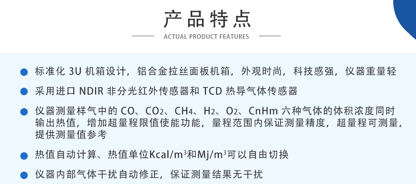 CO、CO2、CH4、CnHm :NDIR非分光紅外; H2:TCD熱導, O2:ECD電化學